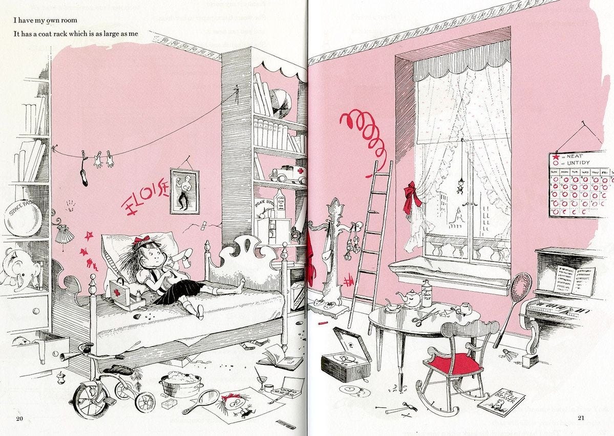 Eloise: If you haven’t heard of Eloise before, she’s a six-year-old girl who lives at the Plaza Hotel and happens to be a charming little menace—think pouring a pitcher of water down the mail chute, meddling with event planning, “skibbling” down hotel corridors with a stick scratching each wall until all guests come out to watch, etc. The character was created in the 1950s by Kay Thompson (who also happens to play Maggie Prescott, the fabulous fashion editor who sings Think Pink! in Funny Face) and was a big part of my childhood, since I grew up watching the Me, Eloise animated series on tv. But only this past holiday season did I dive into both live-action movies (Eloise at the Plaza and Eloise at Christmastime), which are ridiculously similar to one another but a delight to watch all the same, and found so much joy in watching them that I decided to buy the first Eloise book.